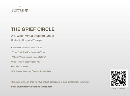If you or someone you know is interested in participating in a grief group, please see the flyer below for more information.